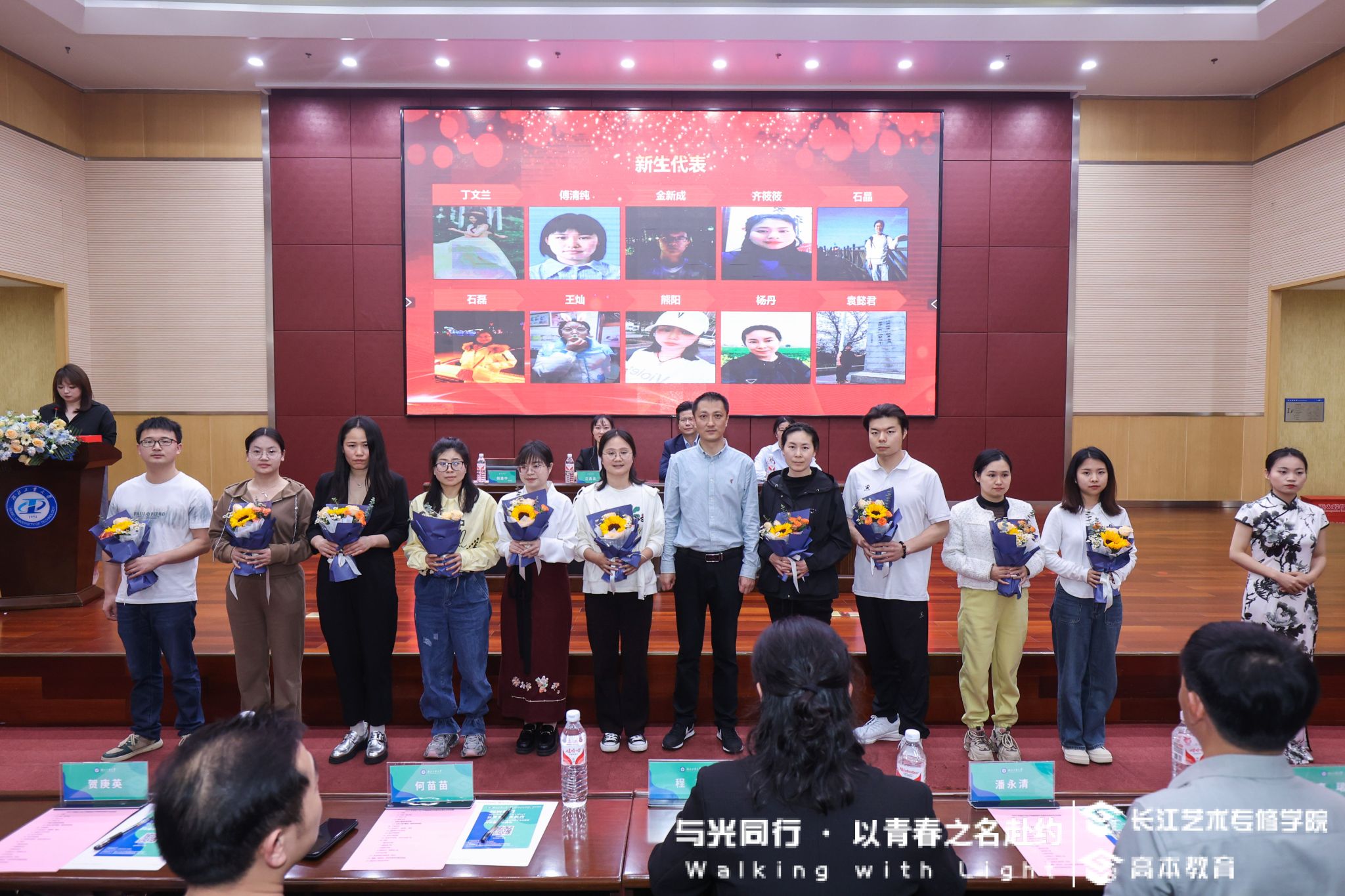 毕业典礼先后为20名2024年新生代表和自考毕业生代表颁发了新生入学通知书及毕业证书。随后与会领导陆续为评选出的“勤学好问奖”、“最具潜力奖”、“成绩优异奖”、“点亮自己,照亮他人奖”及“学习标兵奖”五个奖项共25名优秀学生代表颁发鲜花、奖杯和奖学金。优秀学生代表上台分享了学习感悟,交流了学习心得,见证了彼此学习过程的艰辛与取得学习成就的欢欣。