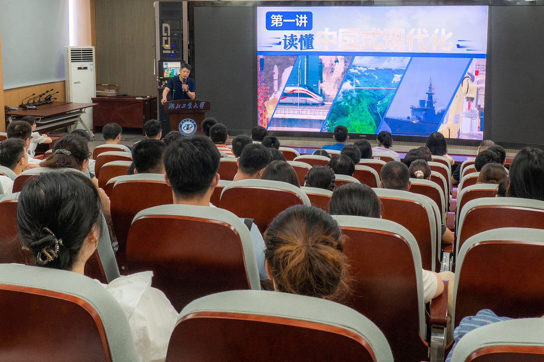 7月7日上午,马克思主义学院石裕东副教授在校本部虚拟仿真思政课教学体验中心为我校成人高等教育学生进行了《形势与政策》课程面授教学。来自24个校外教学点的120余名学生到校参加面授学习,其他学生同步在线观看了面授直播。