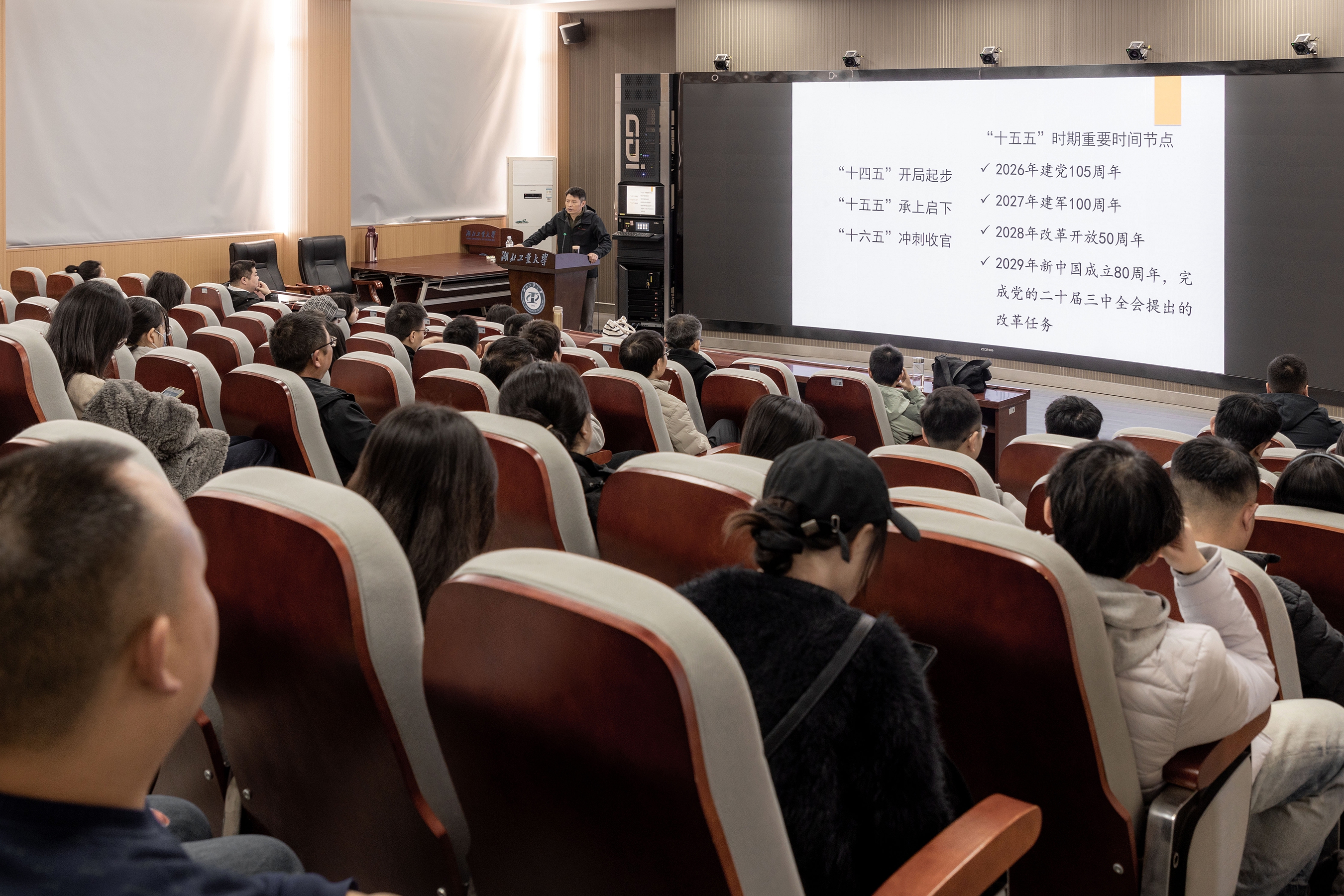 马克思主义学院石裕东教授担任《形势与政策》课程主讲人。他以“十五五规划建议解读”为核心主题,结合当前复杂的国内外形势,系统剖析了我国发展面临的机遇与挑战,重点阐释了“建设中国式现代化强国与美丽中国的现实路径及宏伟愿景”。石老师通过案例分析与理论阐释相结合的方式,帮助同学们深刻领会全面建成中国式现代化强国的丰富内涵,进一步增强了大家的时代责任感与历史使命感。