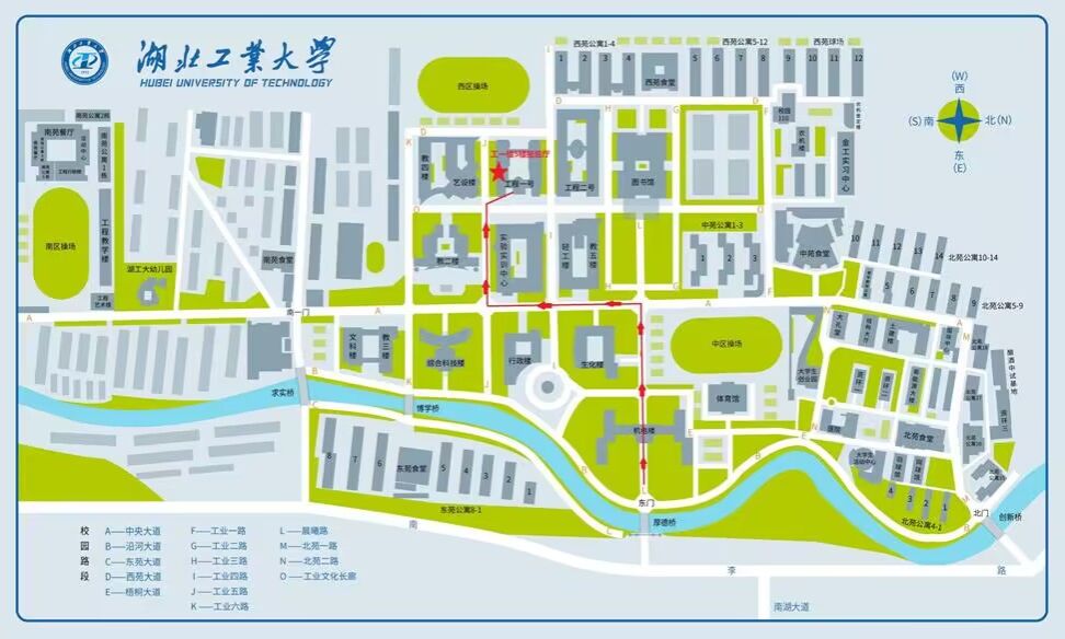 交通说明:公共交通可搭乘地铁7号线,至湖工大站B口出,步行至湖北工业大学东门进校;自驾可导航“湖北工业大学-东门”进校。进校后按照地图所示到达工程1号楼(继续教育学院所在地)。